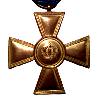 Стоящий овальный значок из позолоченной латуни. Середина знака выполнена ажурной. На задней стороне 6 припаян шплинт для крепления, который вставляется через ответную пластину. Значок нанесен на униформу.