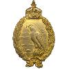 Стоящий овальный знак из позолоченной бронзы. Сзади вертикальная булавка.