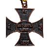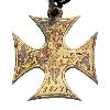 8-лучевая звезда состоит из 48 отдельных лучей. Диагональные лучи, 3 одиночных луча, вытянуты. Средний луч более длинный и мощный. Основные горизонтальные и вертикальные лучи несколько мощнее. Промежуточные лучи, каждый по 4, равномерно градуированы к диагональным лучам. Спереди и сзади большой круглый средний медальон. К верхнему лучу припаивается широкое сужающееся сверху ушко. Сверху небольшой шарик, а сбоку снизу 2 шарика.