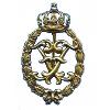 Высокий овальный, ажурный рабочий знак из серебра. Сзади вертикальная булавка.