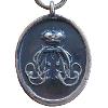 В - замкнутом темно-синем эмалированном поле двойные зеркальные, извилистые инициалы - F - G -