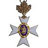 Круглая медаль из серебра с ободом. Сверху поперечно стоящее ушко. В него вставляется еще одно маленькое кольцо, припаянное к кольцу ленты.