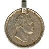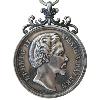 Круглая медаль с приподнятой каймой из серебра. Сверху припаянное обычное ушко с ленточным кольцом. Справа от ушка на ободке серебряные штампы - SILVER 990 -.