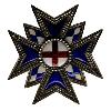 Полый, прямой крест с длинным, нижним крестовиной (латинский крест) из серебра. На верхнем крестообразном плече пятидюймовая герцогская корона, соединённая шарниром. На задней стороне короны вертикально приплюснутая широкая перемычка, через которую натянута лента.