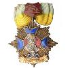 Круглая медаль из позолоченной бронзы без приподнятого края. Сверху широкая гладильная проушина для протягивания ленты.