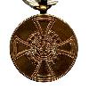 Круглая медаль из бронзы. Сверху припаянное обычное ушко с ленточным кольцом.