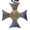 Круглая медаль из матового позолоченного серебра без рельефных граней. Сверху припаянное обычное ушко с ленточным кольцом.
