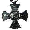 Круглая медаль из позолоченного серебра с приподнятой каймой. Сверху припаянное обычное ушко с ленточным кольцом.