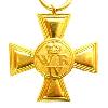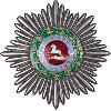 Восьмиконечный крест из серебра с маленькими шариками на кончиках крестовин и полированными краями. Внутренние стороны заштрихованы. Передняя и задняя стороны с большим поднятым круглым медальоном. Между крестовыми рукавами соответственно кричит вверх лев на верхней половине ордена и кричит вниз лев на нижней половине ордена. В верхней крестообразной части - стилизованный лист. На кончиках верхнего крестообразного плеча и листовом орнаменте припаяны 2 скрещенных античных меча, в центре которых находится продолжение листового орнамента, к которому прикреплена корона. Через имперское яблоко короны проходит ленточное кольцо.