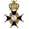Восьмиконечный крест из золота с маленькими шариками на кончиках крестовин и полированными краями. Внутренние стороны мелко изрезаны. Передняя и задняя стороны с большим поднятым круглым медальоном. Между крестовыми рукавами соответственно кричит вверх лев на верхней половине ордена и кричит вниз лев на нижней половине ордена. Между верхушками верхнего крестообразного плеча аграф в виде 3 листьев. Коронка жестко соединена с двумя шариками и средним листом. Через имперское яблоко короны проходит ленточное кольцо.