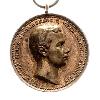 Восьмиконечный крест из золота. Крестообразные руки имеют золотистый бордюр. Внутренние стороны крестовин эмалированы белым цветом. Спереди и сзади круглый, золотой центральный щит. Между крестовыми рукавами соответственно вверх (2) и вниз (2) поворачивается золотой, мекленбургский грифон. Между верхними крестообразными вершинами - извилистый аграф, с которым подвижно посредством внутреннего шарнира соединяется золотая корона. Через имперское яблоко короны проходит вытянутое двойное ленточное кольцо.