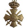 Крест в мальтийской форме из позолоченного серебра. Крестообразный рукав золотой бордюр с широкими, приподнятыми, белыми эмалированными краями. Внутренности золотистые и мелко-зернистые. Передняя и задняя с накладными, эмалированными, круглыми средними щитами. Между крестообразными плечами, по окружности, зелёный, глазурованный ромбовидный венок. В центре каждого листа три части, справа и слева по половине листа. Между верхушками верхних крестовых рукавов - орнаментированный аграф, к которому крепится золотая королевская корона. Через королевскую корону проходит кольцо. В них подвешено удлиненное ленточное кольцо.