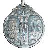 Стоящий овальный значок из позолоченной латуни. Середина знака выполнена ажурной. На задней стороне 6 припаяны шплинты для крепления, которые вставляются через ответную пластину. Знак был наложен на войлочную подложку, пришитую к рукаву.
