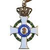 Крест из позолоченного серебра. Крестообразные руки золотистые бордовые и эмалированные синего цвета. Концы крестца слегка загнуты внутрь и имеют скошенные кончики. Спереди и сзади круглый эмалированный золотой медальон. На верхнем крестообразном плече аграф с малым кольцом и ленточным кольцом.