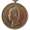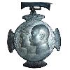 Медаль круглого сечения из бронзы с приподнятой каймой. Сверху обычное ушко с ленточным кольцом.