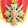 Серебряный крест в мальтийской форме. Крестообразные руки серебристые бордюры. Внутренние стороны с синей стеклянной эмалью. Под ним полупрозрачная, похожая на елочку, штриховка. Спереди и сзади с приподнятым круглым золотым медальоном. Между вершинами верхнего крестообразного рукава орнаментированный аграф. В кольце ленты заводская точка - GH - для братьев Хеммерле.