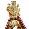 Полый рельефный знак из позолоченного цветного металла. На спине припаянная, перпендикулярная булавка. За значком висит повязанная на петлю орденская лента 2 концами вниз. На ней напечатано Писание Завета.