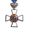 Крест из золота с белыми эмалированными крестовыми рукавами и золотыми краями. В центре с двух сторон надет круглый медальон с каймой. Сверху угловатое ушко. Через эти два маленьких гладких кольца, с которыми связана подвижная золотая корона. Через имперское яблоко короны проходит ленточное кольцо. На ленточном кольце производителей - WOHACK -.
