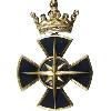 Серебряный крест со слегка фигурными крестовыми концами. Крестообразные руки окаймлены серебром и эмалированы белым. Передняя сторона с надетым круглым, золотым и эмалированным центральным щитом. Задняя сторона без эмали с перпендикулярной булавкой.