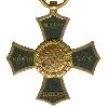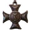 Восьмилучевая звезда из серебра. 8 главных лучей удлинённые. Между главными лучами к центру по 5 промежуточных лучей. Лучи латерально окаймлены более короткими линиями. В центре положен большой, серебряный и эмалированный медальон. Требования золотые. Задняя сторона гладкая и серебристая с большой круглой крышкой. В центре - название производителя. Вертикально, булавка с крючком.