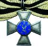 Крест из золота или серебра позолоченный с расширяющимися наружу крестовыми рукавами. Крестовины спереди заполнены зелёной полукруглой рельефной стеклянной эмалью. На концах начинка скошена. Промежутки крестовых рукавов заполнены позолоченными украшениями (брекетами). Спинка крестовых рукавов гладкая и выполнена из позолоченного серебра. Спереди и сзади с надетым золотым медальоном. На верхнем крестообразном плече припаяно поперечное ушко, через которое проходит вытянутое двойное ленточное кольцо.