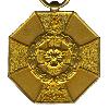 Круглая медаль с ободком из бронзы. На краю передней и задней части круговая окружность штрихов. Сверху припаянное ушко с ленточным кольцом.