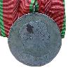 Бронзовая овальная медаль. Сверху по краю летящая лента вправо и влево. По центру в форме треугольника, в который подвешена ажурная корона. Через имперское яблоко короны проходит ленточное кольцо.