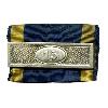 Овальная медаль из серебра. Сверху по краю летящая лента вправо и влево. По центру в форме треугольника, в который подвешена ажурная корона. Через имперское яблоко короны проходит ленточное кольцо. В кольце ленты серебряный пуансон 900.
