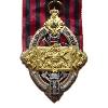 Круглая медаль из серебра с приподнятой каймой. Внутри - жемчужный край. Сверху припаянное обычное ушко с ленточным кольцом.