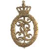 Круглая медаль из позолоченной меди поверх припаянной открытой королевской короны. Через имперское яблоко королевской короны проходит ленточное кольцо.
