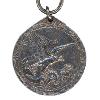 Круглая, серебряная медаль частично эмалированная с приподнятой каймой. Сверху припаянное обычное ушко с ленточным кольцом.