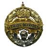 Круглая медаль из стали с приподнятой каймой. Сверху - уширение края с отверстием. Через это небольшое кольцо для кольца ленты.