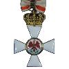 Крест из серебра. Поперечные рычаги с гладкими полированными краями. Внутренности мелко изрезаны. Лицевая сторона с накладным эмалированным медальоном. Медальон реверса без эмали. На верхнем крестовине подвижно закреплена серебряная корона. Промежутки кроны заполнены красной эмалью. Через имперское яблоко проходит ленточное кольцо. Обозначения изготовителя расположены в виде метки надреза между поперечными рычагами или на лицевой стороне нижнего поперечного рычага.