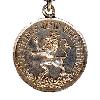 Круглая серебряная медаль с приподнятой каймой. Сверху припаянное обычное ушко с ленточным кольцом.