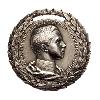 Серебряная медаль без поднятой каймы. Сверху имеется широкий проушин, через который тянется лента.