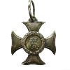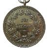 Серебряная медаль с приподнятой каймой поверх паяного уха со скрещенными мечами. В месте пересечения мечей вверху сегмент с ушком и ленточным кольцом.