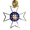 Крест из серебра в виде иоаннитского креста. Поперечные рычаги с гладкими полированными краями. Внутренние стороны мелко изрезаны. Спереди и сзади с надетым круглым центральным щитом. Между кончиками верхнего крестообразного плеча обыкновенное ушко с ленточным кольцом.