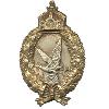 Овальный крестообразно лежащий значок из бронзы также латунный позолоченный. Сзади с накидным штырем. Известны версии с производителем и без него.
