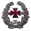 Крест из посеребренного цветного металла в виде Железного креста. Крестообразные плечи с приподнятыми краями гладкие внутри и немного выгнуты внутрь на концах. Между крестовыми рукавами 3-рядный дубово-лиственный венок. Спереди - тисненый эмалированный щит. На верхнем крестообразном плече припаянное обычное ушко с ленточным кольцом.