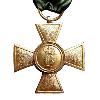 Восьмиконечный крест мальтийской формы из серебра. Спереди и сзади с круглыми, припаянными средними щитами. Крестообразные рукава с узким приподнятым краем мелко зернистые. Между крестообразными плечами на расстоянии друг от друга расположен вращающийся зелёный эмалированный венок, имеющий по 3 ромба между плечами. Между кончиками верхнего крестообразного плеча припаяно обычное ушко с ленточным кольцом.