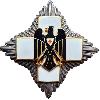 Высокий овальный значок из посеребренного цинка. Орел отдельно наклонился и почернел. Сзади вертикальная булавка. Обозначение производителя на орле.