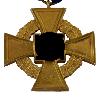 Серебряный позолоченный крест в форме иоаннита. Крестообразные руки бордовые золотистые и эмалированные белого цвета. Между крестовыми рукавами соответственно золотой, обращённый влево имперский орёл с опущенными крыльями. В уловах дубовый венок. В центре которой свастика, поставленная на вершине. Основание эмалированное белое. Между кончиками верхнего крестообразного плеча - аграф с куцым ушком, через который проходит ленточное кольцо. На кольце ленты серебряный пуансон 900 и номер изготовителя, например, 21 для Годе.