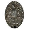 Ажурный рабочий знак из посеребренного цветного металла. Подкрашенный орел чеканился отдельно и клепался вместе с венком. Сзади вертикальная булавка. Обозначение производителя высечено на орле.