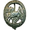 Полый рельефный знак из посеребренного металла в виде стоящей стрелы. По центру стрелы выбито круглое широкое кольцо. Окружена кольцом свастика, поставленная сверху. Промежутки до кольца пробиты. На оборотной стороне - вертикальная булавка и наградной номер.