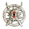 Знак из посеребренного металла в виде стоящей стрелы. По центру стрелы выбито круглое широкое кольцо. Окружена кольцом свастика, поставленная сверху. Промежутки до кольца пробиты. На задней стороне - вертикальная булавка и обозначение производителя.