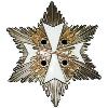 Крест из позолоченной бронзы, состоящий из 2 смещённых на 180 ° 5-лучевых звёзд. Нижняя звезда имеет прямые лучи и концы и позолочена с 5 углубленными продольными бороздками каждая (шириной 7,1 мм). Средний луч направлен вверх. На него наложена пятилучевая звезда, окаймленная золотом и белой эмалью. Лучи прямые, на концах имеют 2 вершины. (ширина 9,1 мм) Средний луч направлен вниз. В центре расположены 5 олимпийские кольца. На верхнем луче запечатлен орел. На голове орла - рельефное ленточное кольцо.