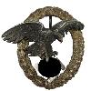 Крест из позолоченного серебра в мальтийской форме. Поперечные рычаги с гладкой, полированной, приподнятой кромкой. Внутренности мелко изрезаны. Между крестовыми рукавами соответственно летящий вправо орёл люфтваффе с распростёртыми крыльями, в лапах свастика, поставленная на острие. За орлами через центр скрещены 2 меча. Центральный круглый щит (16 мм). Сзади вертикальная булавка.