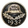 Ажурный рабочий и полый рельефный нарукавный знак из посеребренного цветного металла в виде стоящего ромба. В каждом из 4 углов есть небольшое отверстие для пришивания к рукаву.