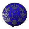 Круглый знак из посеребренной бронзы. Лицевая сторона эмалированная. На спине вертикальная булавка.