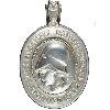 Круглая медаль из позолоченного медного сплава с приподнятой каймой. Сверху припаянное, обычное ушко с ленточным кольцом.